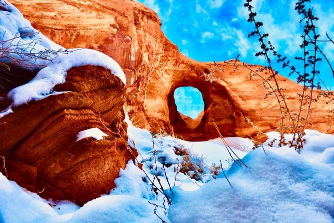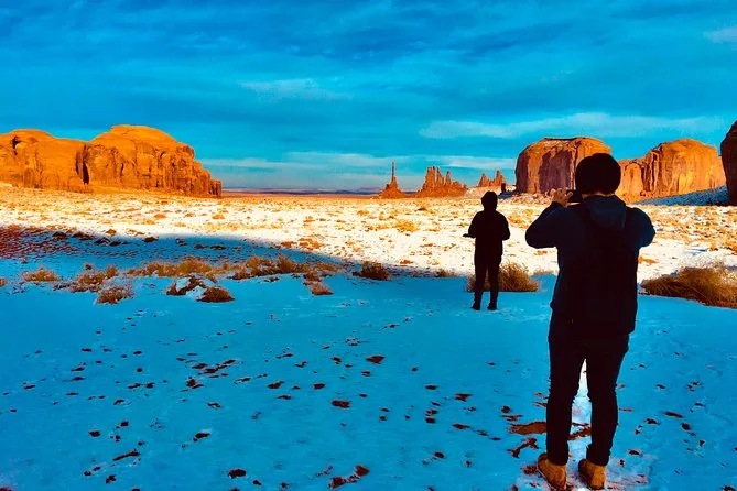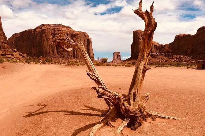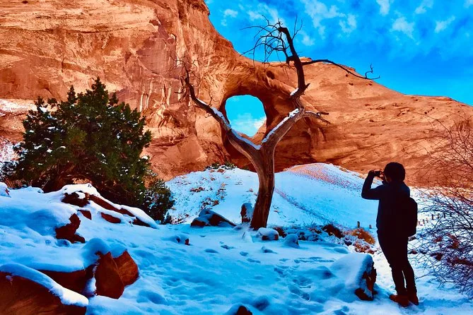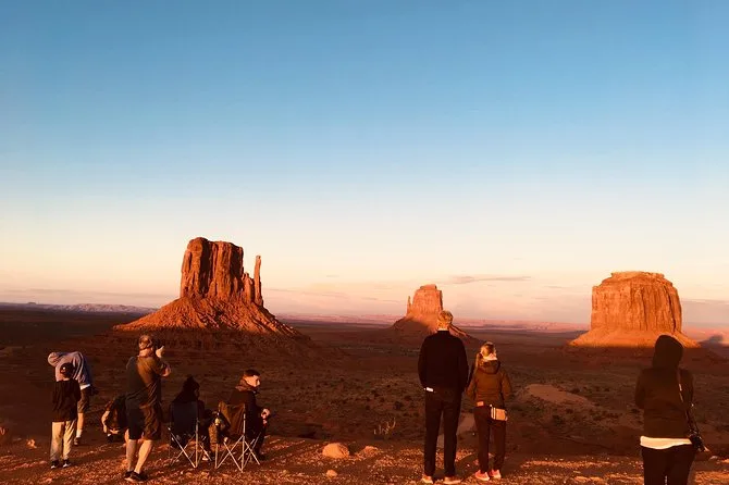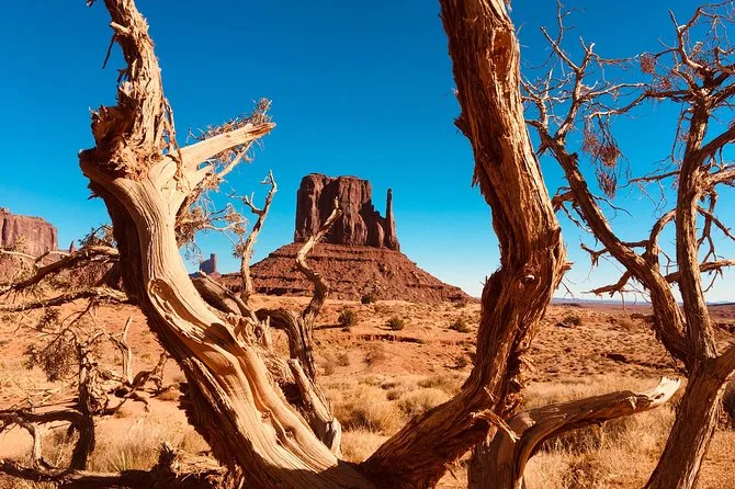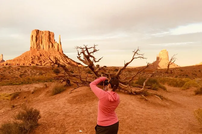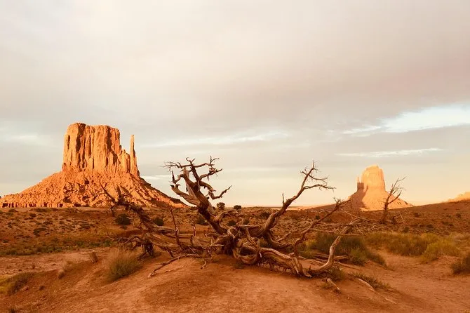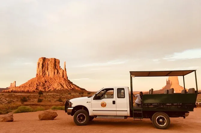 You’ll ride through Monument Valley’s wildest corners with a Navajo guide, watch sunset paint the Mittens and Totem Pole Monuments, step inside a traditional Hogan for rug weaving and music, and hear stories you won’t find on signs. Pickup is included—just bring your curiosity (and maybe a jacket).