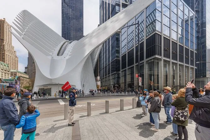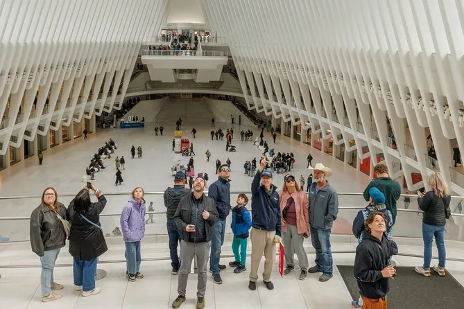 The drive through SoHo and Chinatown was a blur of fire escapes and neon signs — I tried to snap a photo but mostly got my own reflection in the glass. Someone behind me asked Maria about her favorite dumpling spot; she grinned and rattled off three places (I only remembered one). When we reached the 9/11 Memorial, things got quieter. The water in the pools moved gently — you could hear it even over the city noise. Not sure why that stuck with me.