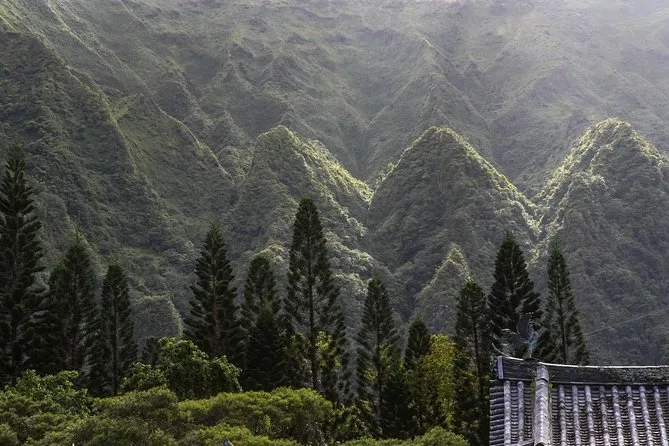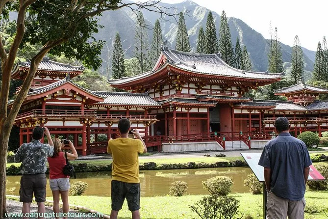 Your day includes hotel pickup from select Waikiki locations, live narration by an experienced local guide alongside a professional driver for safety, all entry fees for sites like Waimea Falls and Byodo-In Temple already paid for you (no surprises), plus a hearty shrimp or veggie lunch with drink before returning as sunset colors start creeping across Oahu’s sky.