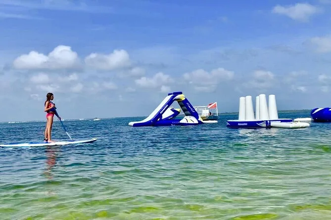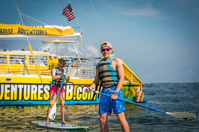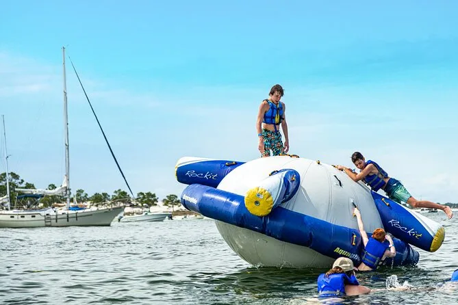 Your day includes a 3-hour catamaran cruise from Panama City Beach to Shell Island with unlimited access to kayaks, paddle boards, snorkeling gear, and a floating inflatable water park. There’s an onboard bar for snacks and drinks (card only), plus restroom facilities on board. All activities are included—you just show up ready for sun and saltwater fun before sailing back in late afternoon.