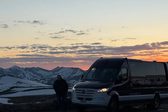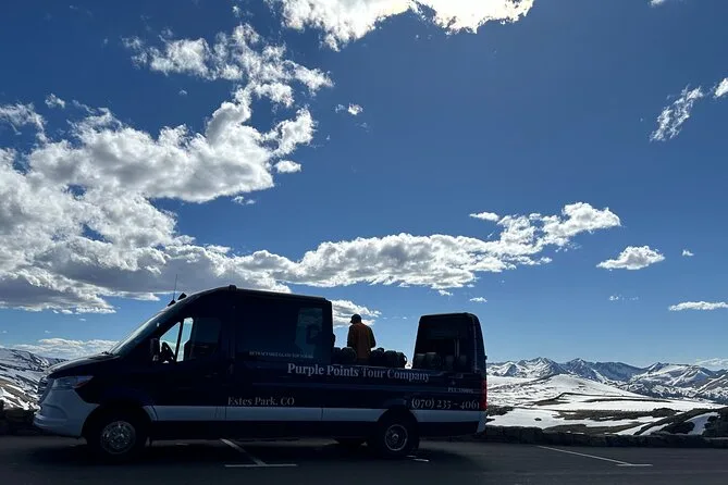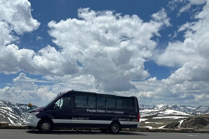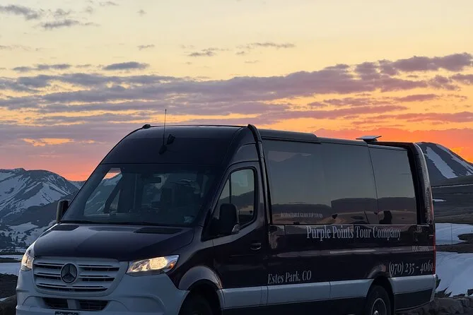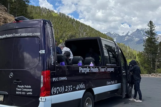Your day includes pickup at Purple Points’ downtown Estes Park storefront with all transport in a luxury glass-top van—climate controlled for comfort no matter how wild Rocky gets outside—with complimentary snacks and hot or cold drinks always within reach as your local guide leads short hikes and shares stories before returning you back downtown at journey’s end.