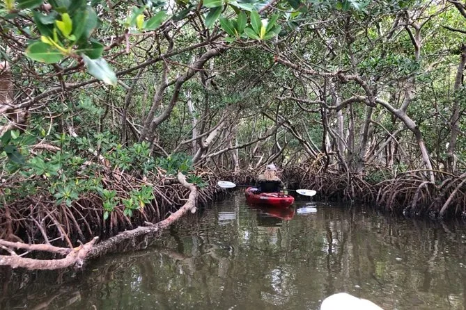 The mangrove tunnels are… well, they’re narrower than I pictured, almost like nature made secret hallways just wide enough for a kayak. The light gets all dappled and green in there, and you have to duck sometimes (I got dripped on by something cold — probably just leaf water). It’s kind of peaceful but also makes you whisper without meaning to. Jamie told us about how the roots help protect the shoreline during storms; she grew up here, so you could tell she actually cared about these trees. At one point my paddle bumped a root and startled a crab — which made me jump more than it should’ve.
