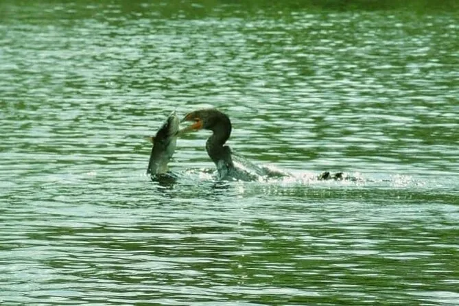 I kept expecting the monkeys to be a myth, but then there they were — little brown faces peeking out from tangled branches. One of them actually tossed something (fruit? nut?) into the water and made this chattering noise that sounded like laughter. Jen told us about how they ended up here (movie stunt gone wild in the 1930s — only in Florida). Every so often she’d pause to show us old statues half-buried underwater or point out birds with names I forgot instantly. There was even talk of sunken movie props somewhere near the bend, though I never spotted them myself.