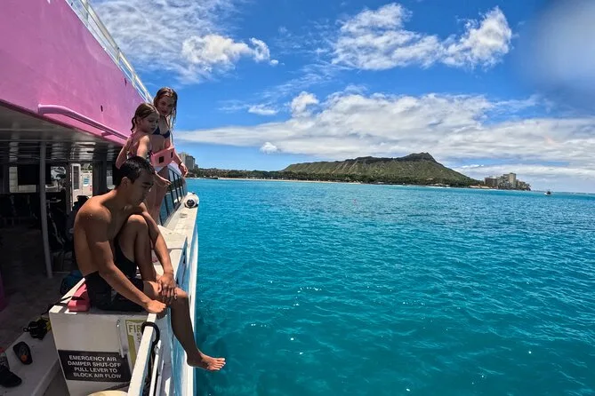 Your adventure includes a two-hour whale watching cruise off Waikiki with local guides at the helm; if no whales appear during your trip, you’re offered a complimentary re-ride—just remember to provide full names ahead of time for check-in compliance before heading out onto Oahu’s open water.