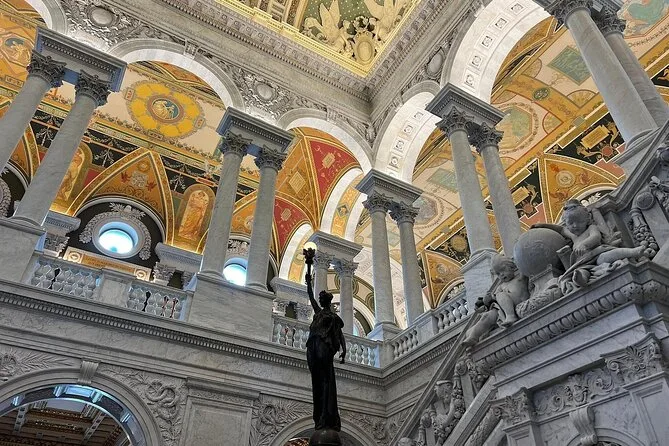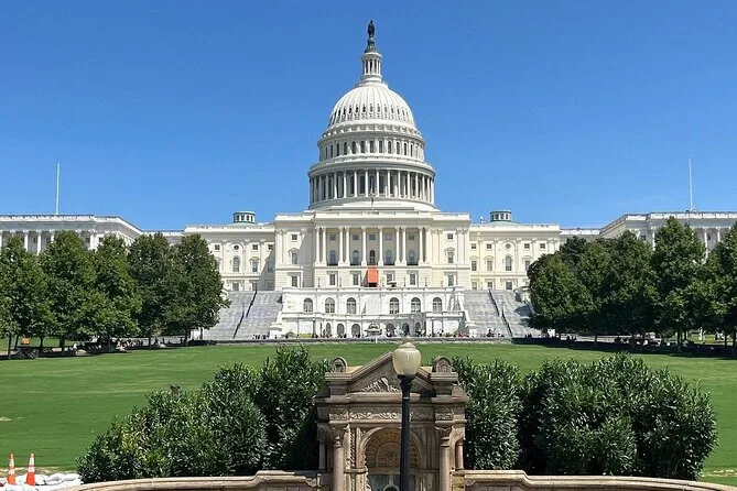 Your day includes a semi-private guided walking tour through Capitol Hill with stops at the Supreme Court exterior and inside the Library of Congress’ historic halls; at the end your guide provides entry passes for unguided visits to either or both House and Senate galleries so you can continue exploring at your own pace—even after saying goodbye to your group.