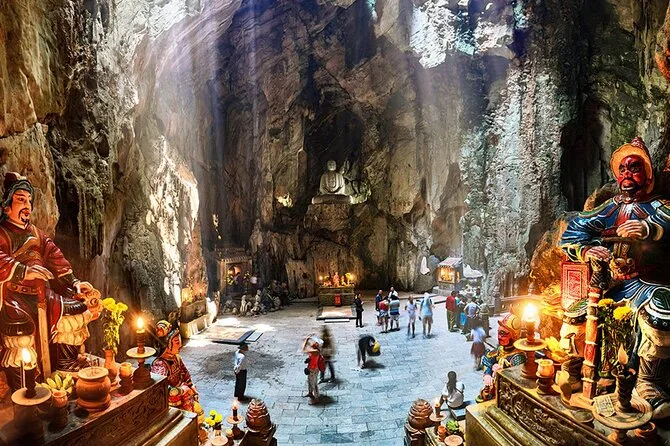 You’ll climb cool caves in Da Nang’s Marble Mountains, listen for temple bells at Linh Ung Pagoda, wander ancient ruins at My Son Sanctuary with your guide sharing stories, then finish among glowing lanterns in Hoi An Ancient Town. Includes pickup, lunch and all entrance fees—plus those small moments you’ll remember after you leave.