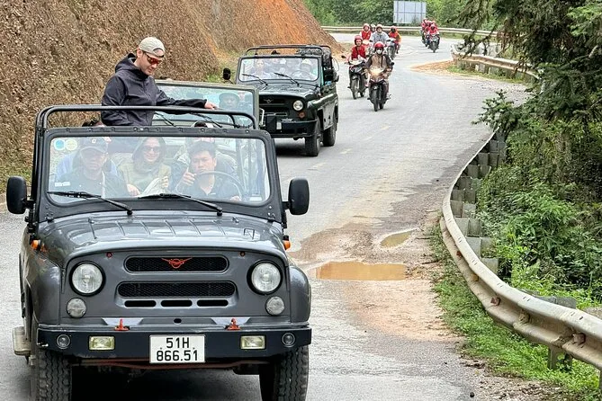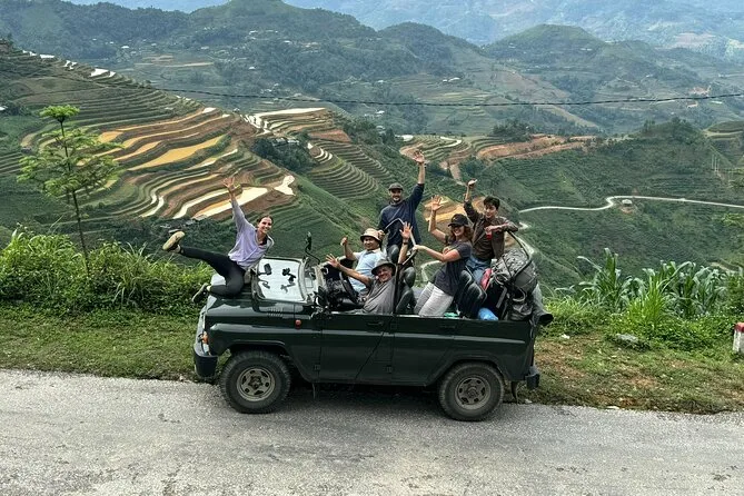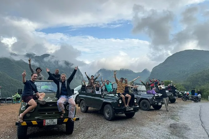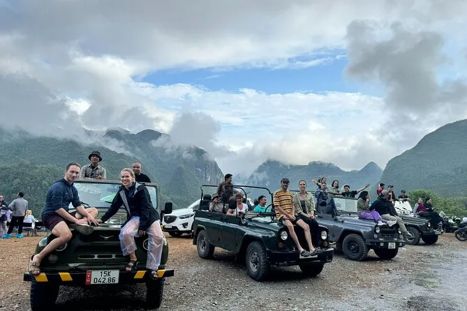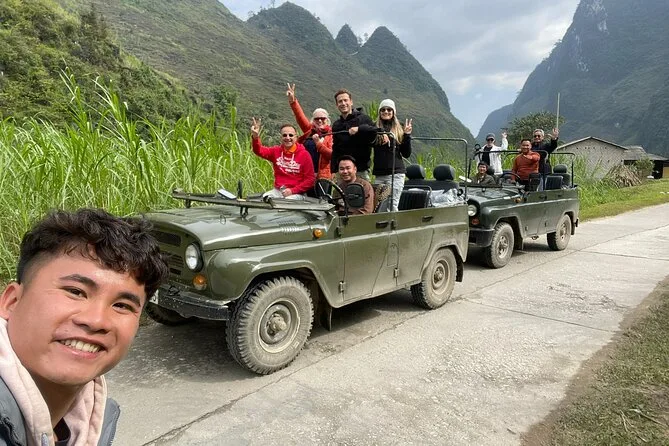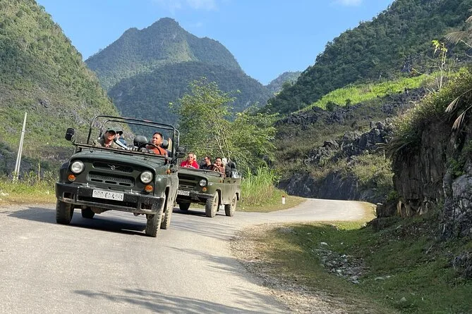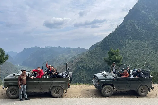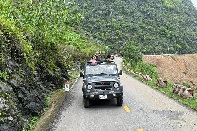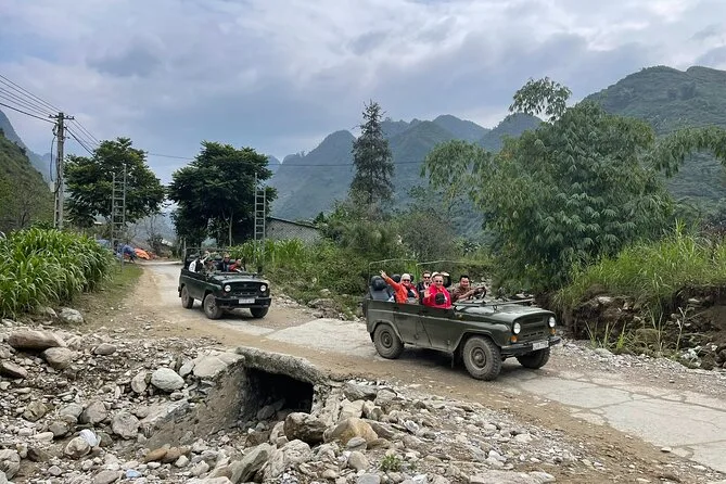 Your journey includes pickup and drop-off from Ha Giang City, travel by open air jeep with professional driver and fuel covered throughout both days. You’ll have an experienced English-speaking local guide with you at all times. All entry fees to villages and historic sites are included along with two breakfasts, two lunches (with views), one dinner in Dong Van town’s traditional house accommodation (private room), plus bottled water each day.