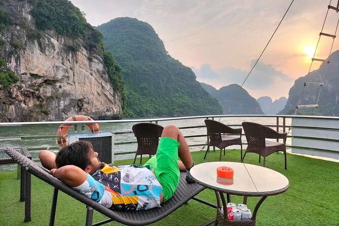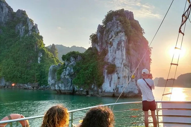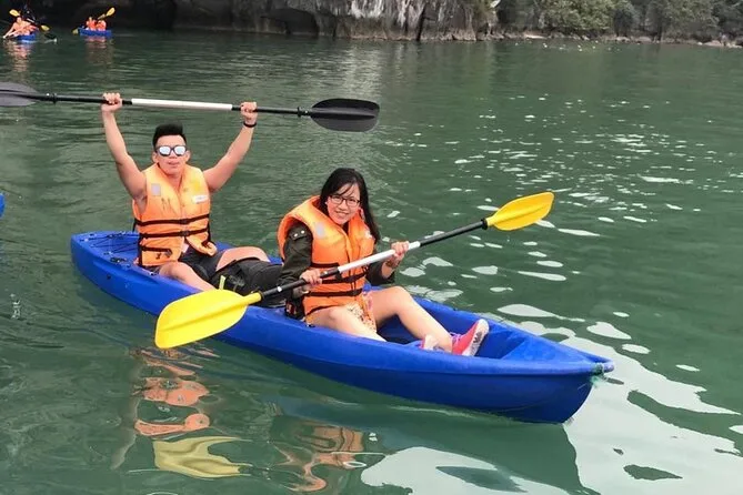 Kayak through luon cave hike titop island lunch on board meet travelers