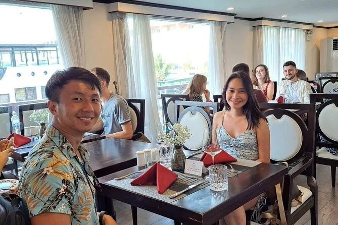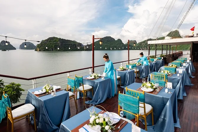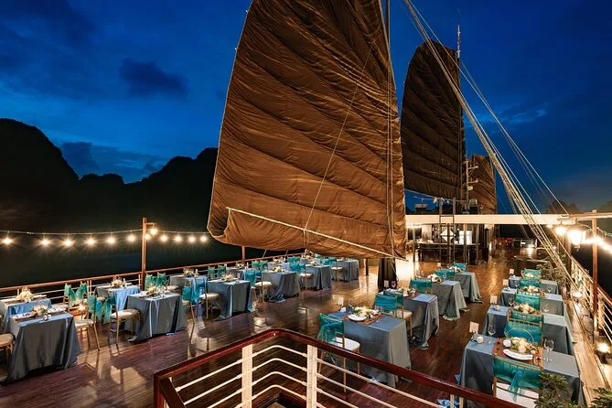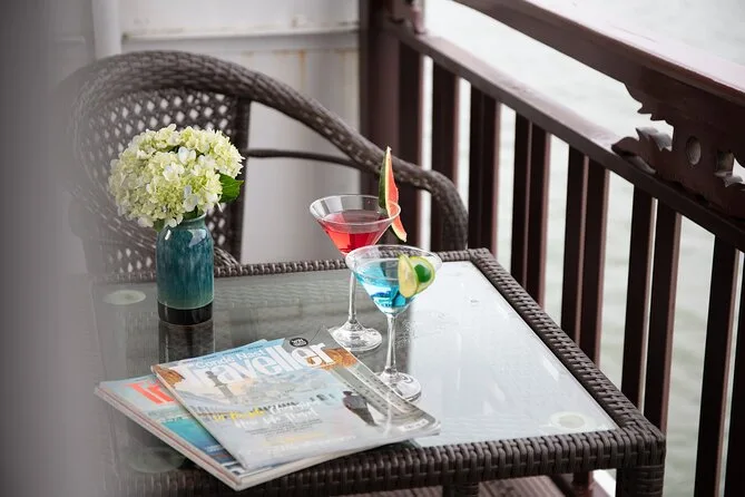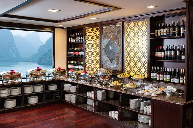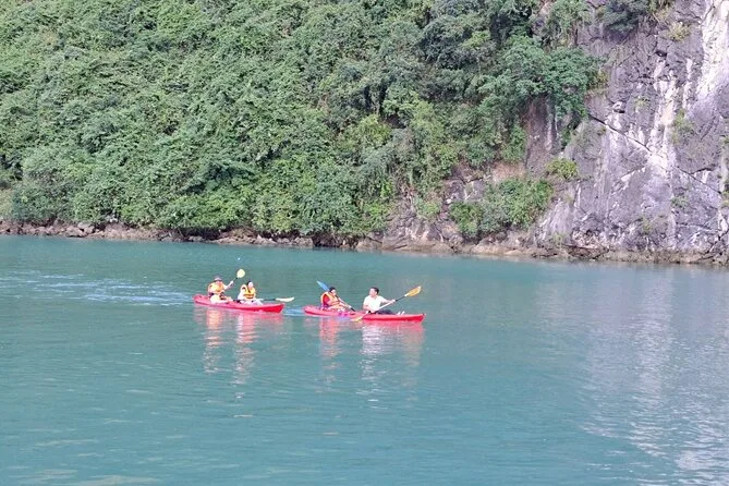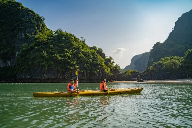 You’ll kayak or take a bamboo boat near Luon Cave, visit Titop Island for swimming or hiking, explore Surprise Cave (Sung Sot), join a cooking class, and enjoy sunset drinks onboard.