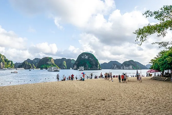 The kayaking near Luon Cave was probably my favorite part of this Ha Long Bay day trip from Hanoi. Paddling between cliffs while tiny birds zipped overhead — I actually dropped my paddle once because I got distracted by how quiet everything felt out there. Later we stopped at Titop Island; some people hiked up for the view (I made it halfway before giving up and just watched kids splashing around on the beach). On the way back, they served local wine and fruit as sunset turned the sky this weird mix of purple and gold. It’s hard to describe that feeling — being tired but happy, salt still drying on your skin.