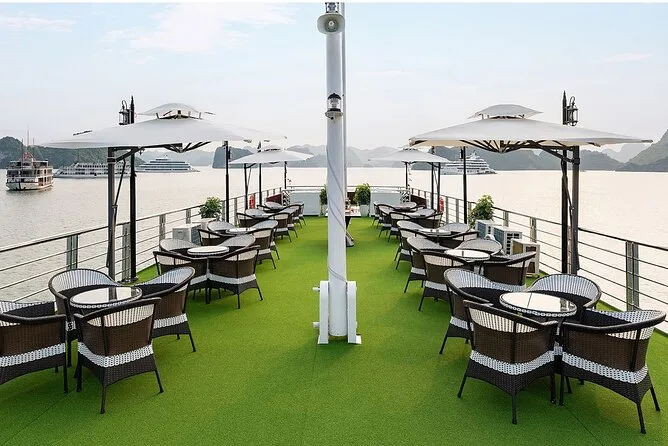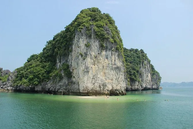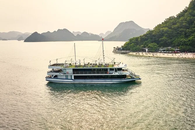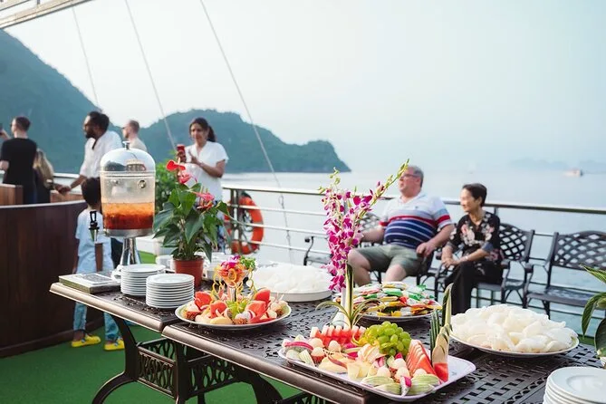 Your day includes hotel pickup in Hanoi’s Old Quarter (if selected), all entrance fees for Ha Long Bay attractions like Surprise Cave and Titop Island, a big buffet lunch with local dishes (vegetarian options available), kayaking or bamboo boat ride at Luon Cave with local rowers guiding you if you want help, plus tea, wine and fresh fruit served as you watch sunset before heading back in comfort by bus.