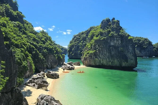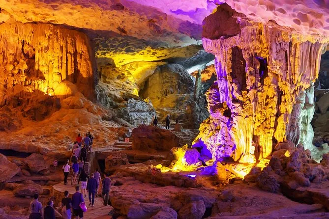 You’ll travel from Hanoi to Ha Long Bay with hotel pickup included, cruise past limestone islands on a modern boat with buffet lunch, kayak through Luon Cave’s calm waters, explore Surprise Cave’s cool chambers, and end your day sipping wine as sunset colors shift over the bay. Expect laughter with your guide and small surprises along the way.