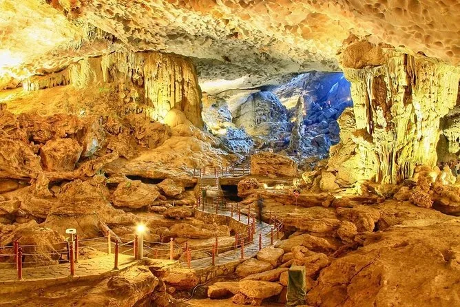 You’ll cruise Halong Bay’s emerald waters with a local guide, wander through Sung Sot Cave’s cool chambers, kayak beneath towering cliffs, and hike (or swim) at Titop Island before sharing fruit and wine as the sun sets over limestone peaks. It’s a day that lingers long after you’re back in Hanoi.
