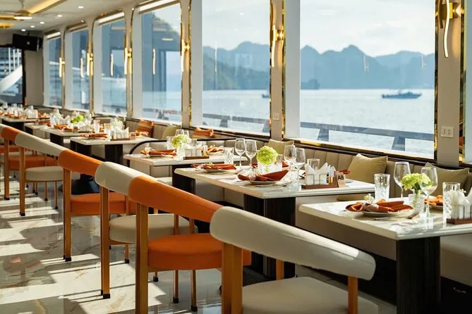 Yes, a Vietnamese seafood lunch is served onboard (vegetarian options available).