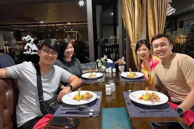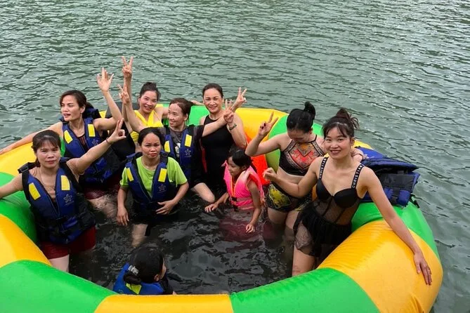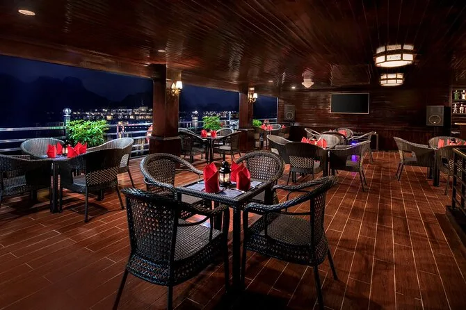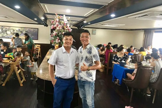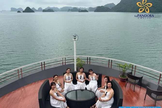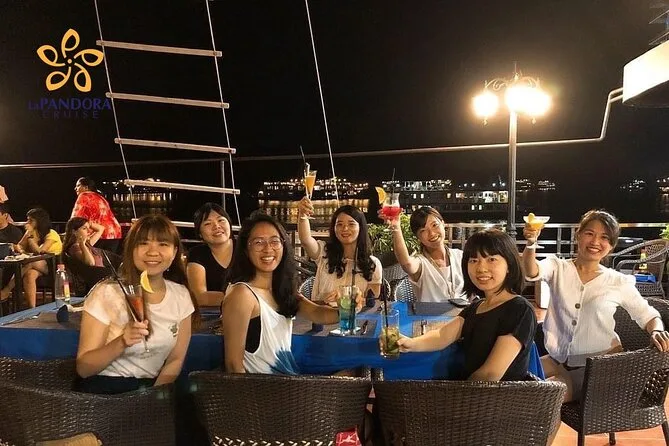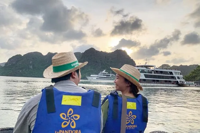Your experience includes hotel pickup in Hanoi Old Quarter (if selected), all entry fees and taxes throughout Halong and Lan Ha Bay, guided kayaking or bamboo boating led by locals, a sunset party on deck with happy hour specials, hands-on Vietnamese cooking demonstration (yes—spring rolls!), squid fishing after dinner if you’re curious enough to try it out yourself, plus all meals freshly prepared onboard before returning comfortably to Hanoi by limousine bus.