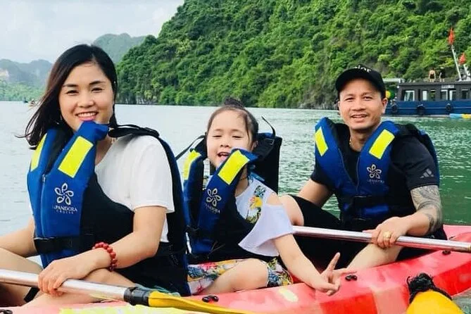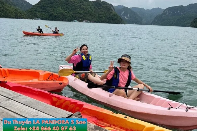 You’ll get kayaking or bamboo boating in Lan Ha Bay, a sunset party, cooking demonstration (spring rolls), squid fishing, games, movies onboard, Tai Chi session at sunrise, plus swimming opportunities.