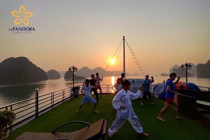 You’ll drift through Halong and Lan Ha Bay’s quieter corners by cruise, kayak into hidden lagoons with your local guide Minh, try your hand at rolling Vietnamese spring rolls during a cooking class (don’t worry if they fall apart), watch sunset from the sundeck with new friends, and wake up to Tai Chi as dawn breaks over limestone peaks—leaving you with more than just photos.