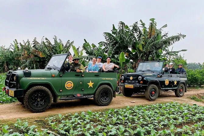 You’ll hop into a classic Army Jeep for a day trip from Hanoi’s Old Quarter to the Red River countryside and backstreet neighborhoods — meeting locals over green tea, watching trains thunder past your café table on Train Street, and sharing lunch at Hidden Gem Café. Expect laughter, surprises, and little moments you’ll remember long after you leave.