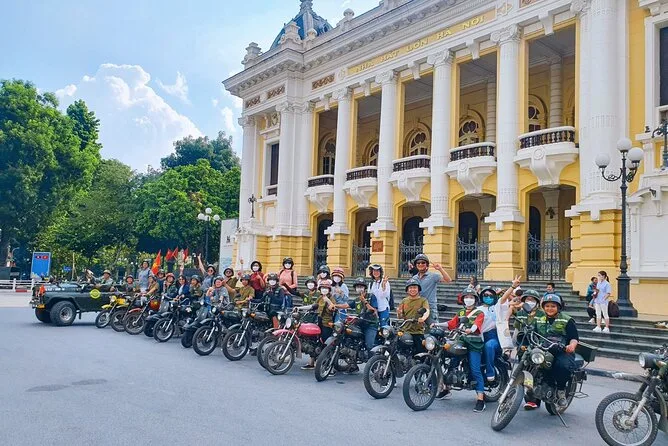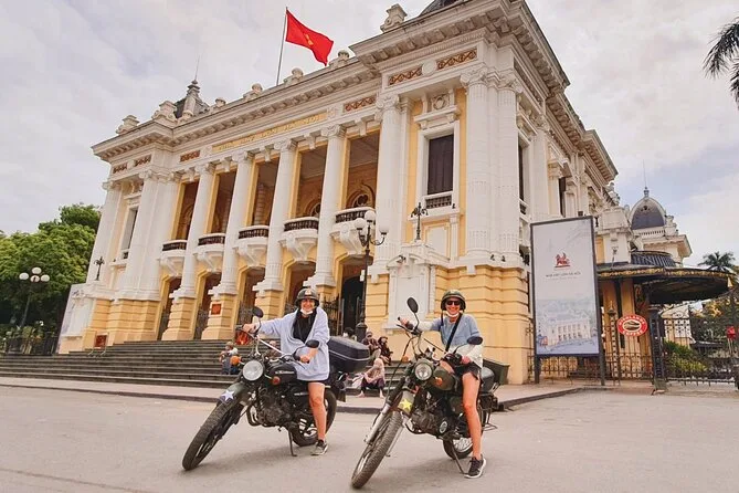 You’ll ride vintage motorbikes through Hanoi’s wild traffic with a local guide, visit landmarks like Ho Chi Minh Mausoleum and Long Bien Bridge, sneak onto Train Street for coffee as trains roar past, explore hidden alleys most travelers miss, and end with egg coffee in a quirky Old Quarter café. Expect surprises—and maybe a little splash on your jeans.