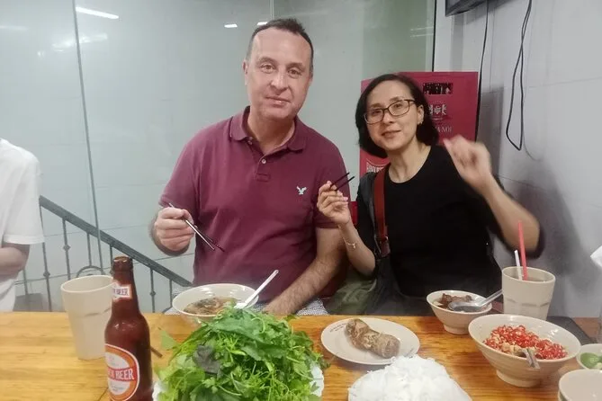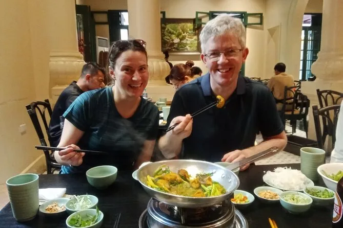Your day includes hotel pickup from anywhere in Hanoi’s Old Quarter, all street food tastings (usually 6–8 dishes), drinks like coffee or beer at Train Street café, time spent walking through hidden alleys with an English-speaking local guide, and help getting back to your hotel if you need it at the end.