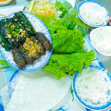 You’ll taste nine different dishes including banh xeo pancakes, bo la lot (beef in betel leaves), bot chien (fried rice cakes), banh mi, BBQ seafood or meat, noodle soup specialties and dessert.