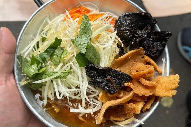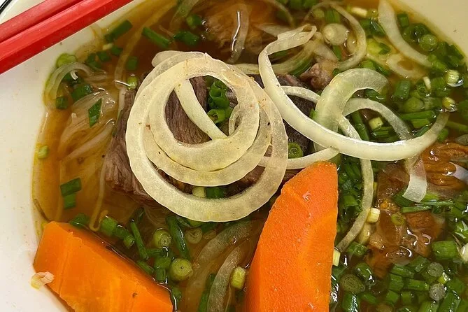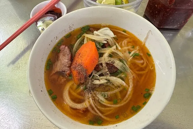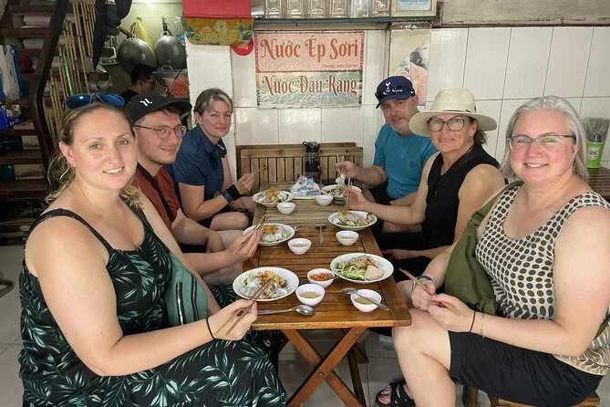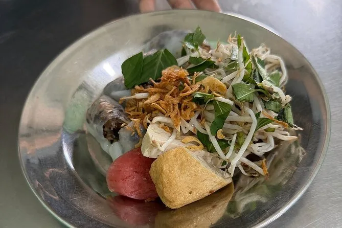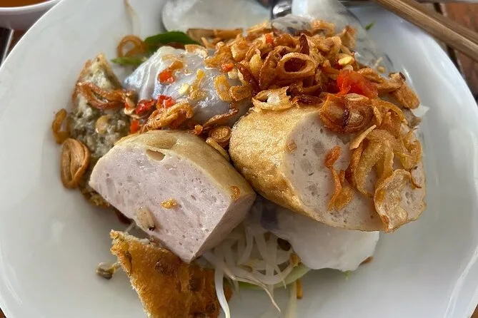 “You’re not full yet, right?” That’s what our guide, Linh, asked after the third stop — I’d already lost count of how many things I’d tried. We started in District 3 after a quick taxi from my hotel (pickup was easy, no stress), and right away Linh handed me this steaming plate of bánh cuốn. The rice roll was so thin it almost fell apart in my chopsticks — soft and warm, with that herby pork filling and a splash of fish sauce that honestly made me pause for a second. There’s something about eating on tiny stools with scooters buzzing past that makes everything taste sharper. Or maybe it was just the chili.