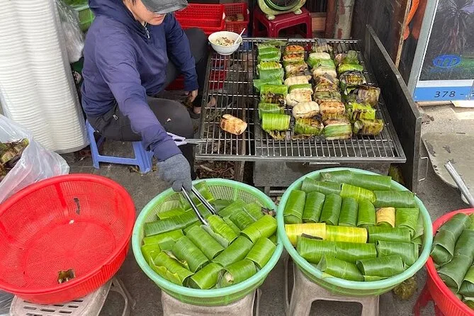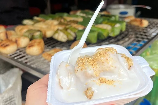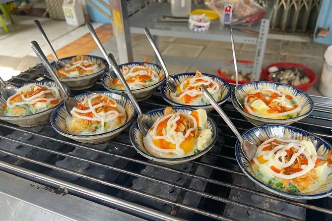 You’ll try around 10 dishes such as bánh cuốn, bò kho, bánh mì, Vietnamese pizza, grilled bananas with coconut milk, and more.