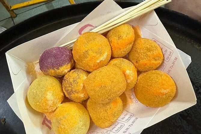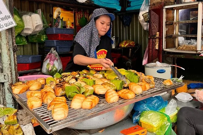 Somewhere between the grilled bananas with coconut milk (chuối nướng) and the real-deal bánh mì from a cart locals actually queue for (not those touristy ones), I realized I hadn’t checked my phone in ages. There was this moment where we just sat on a curb, eating flan out of little plastic cups while watching an old guy sell lottery tickets nearby. It wasn’t fancy but felt kind of perfect. The whole walking street food tour in Ho Chi Minh City was only about 2.5 km — not far — but every block had something new to smell or try or laugh about.