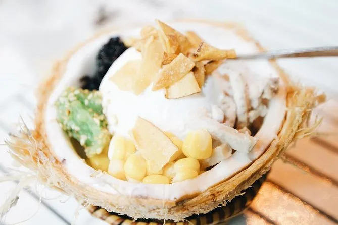 I didn’t expect to love the grilled banana with coconut milk as much as I did—sweet and smoky at the same time, with that coconut sauce dripping everywhere. By then the air smelled like charcoal and something floral from a nearby cart selling incense sticks. We sipped sugarcane juice straight from the press (cold hands for a second) and ended up sharing beer on a restaurant terrace with some of Linh’s friends who joined us for dessert. The flan was soft and wobbly; someone told me there’s always room for more dessert in Vietnam.
