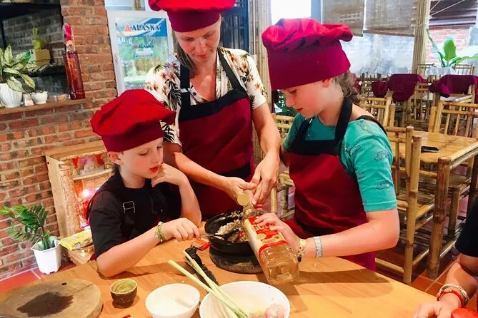 You’ll make papaya salad with prawn, deep-fried spring rolls, braised chicken in clay pot with rice, and Vietnamese pancakes.