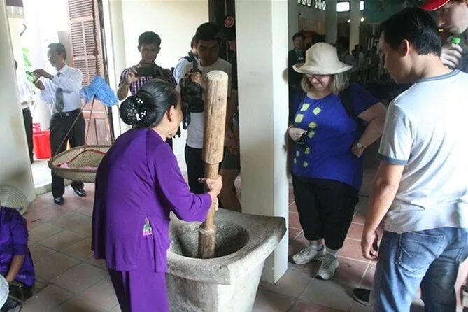 I didn’t expect the motorbike ride to be such a highlight. I’ve never been great on two wheels, but riding pillion behind our driver out into Hue’s countryside was oddly calming—windy but not too fast, with flashes of green rice paddies and kids waving from doorways. We stopped at Thanh Toan Bridge where an old woman showed us how she makes conical hats (I tried one on; looked ridiculous). The bridge creaked under our feet, and you could hear frogs somewhere in the reeds. At Minh Mang Tomb later on, incense drifted through the air while Mr. Hoang explained why emperors built their tombs like miniature cities—something about harmony with nature that actually made sense once you stood there.