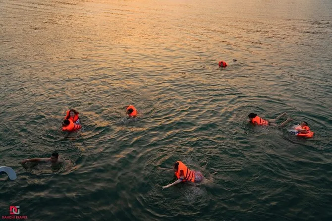 By early evening, everyone gathered on deck for what they called a “Sunset Party.” It felt relaxed—people chatting over fruit plates, kids laughing as they tried to spot fishing boats heading home. You could see floating houses in the distance and hear faint music drifting from one of them. The crew checked in often to make sure everyone had what they needed (extra towels or drinks). When it was time to head back, I felt like I’d squeezed every drop out of that golden hour.