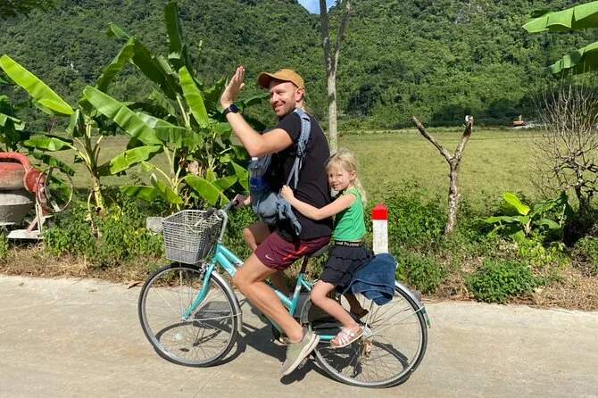 Your round-trip shuttle from Hanoi (if selected), all entrance fees, kayaking gear, bikes or electric car ride in Viet Hai Village, welcome drink and towel on board, lunch (buffet for groups over 40), cooking demo, English-speaking guide—all sorted so you can just enjoy the day.