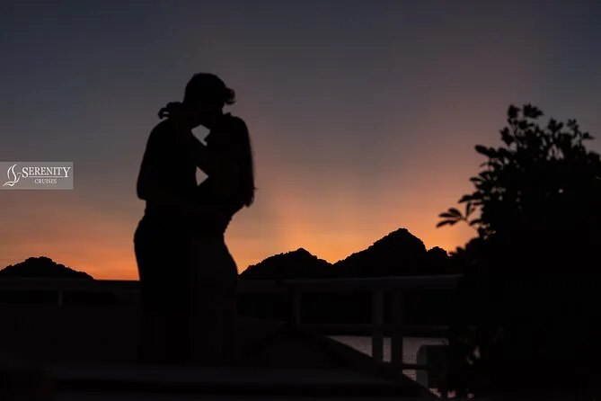 Later in the afternoon, we anchored somewhere quiet for kayaking and swimming. The captain picked a spot away from other boats so it felt private—just us and the sound of cicadas echoing off the rocks. Some folks jumped straight off the top deck; I stuck to kayaking along the edge where small crabs scuttled over sun-warmed stones. Before heading back, there was fruit and tea on deck while everyone swapped stories about their favorite part of the day.