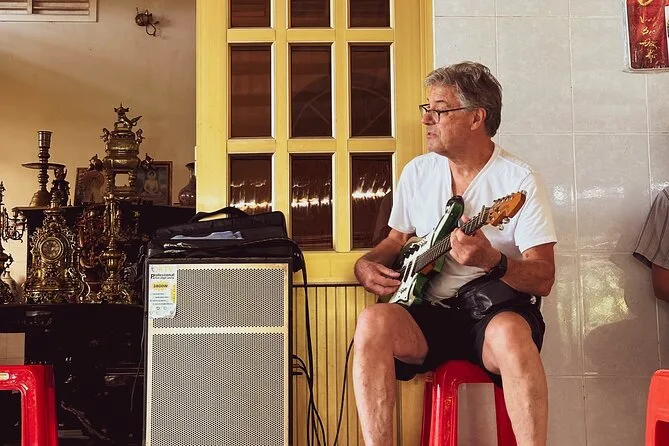 I catch the smell of caramel as we duck into one of those family-run craft places — coconut candy being stretched by hand, rice popping in iron pans. A woman shows me how she wraps each piece in paper so fast I can’t follow. She laughs when I try to say “kẹo dừa” (I definitely butchered it). Someone starts playing đàn tranh nearby and it sounds like water running over stones. We eat fruit straight from the tree — dragonfruit that stains my fingers pink — while an old man sings a song I don’t understand but kind of feel anyway.