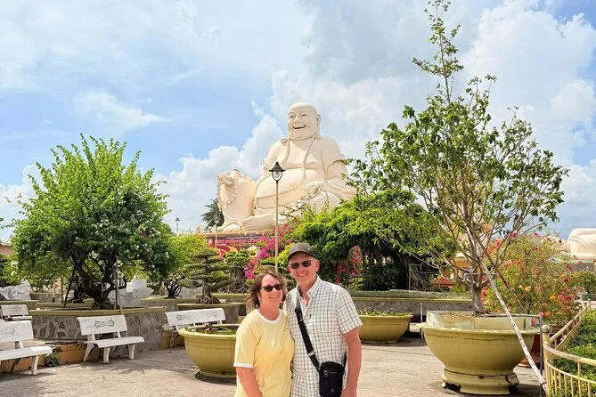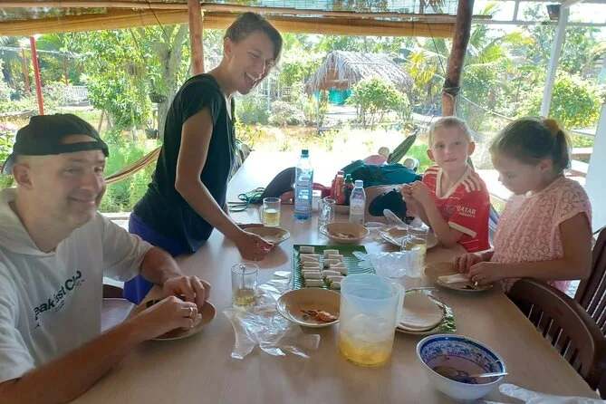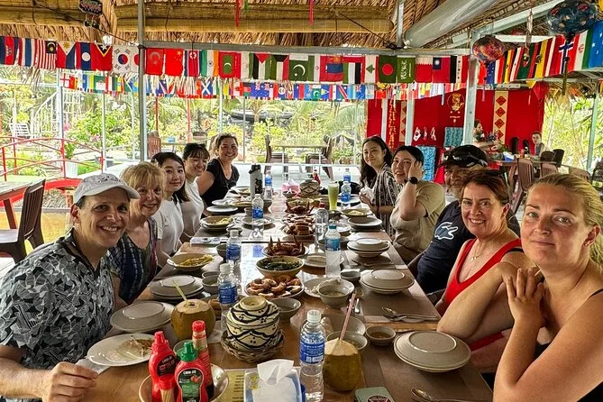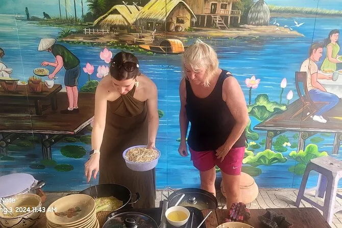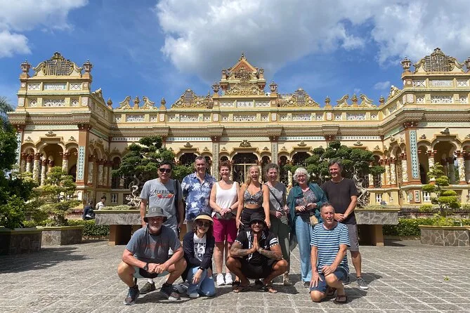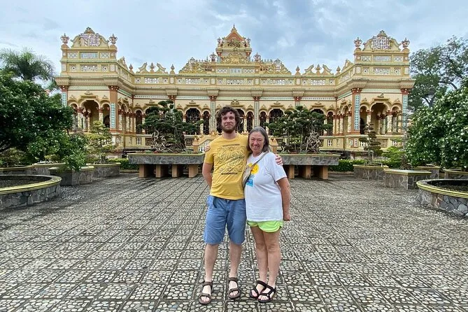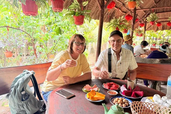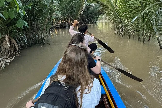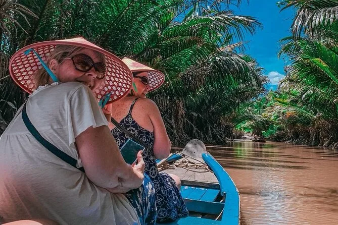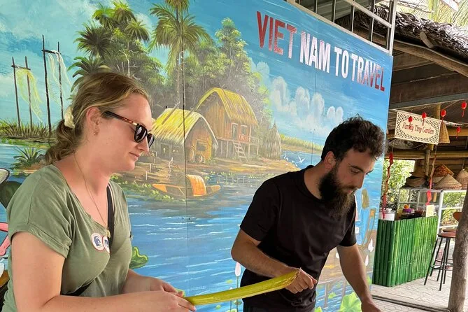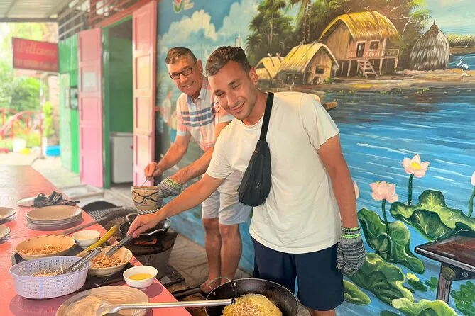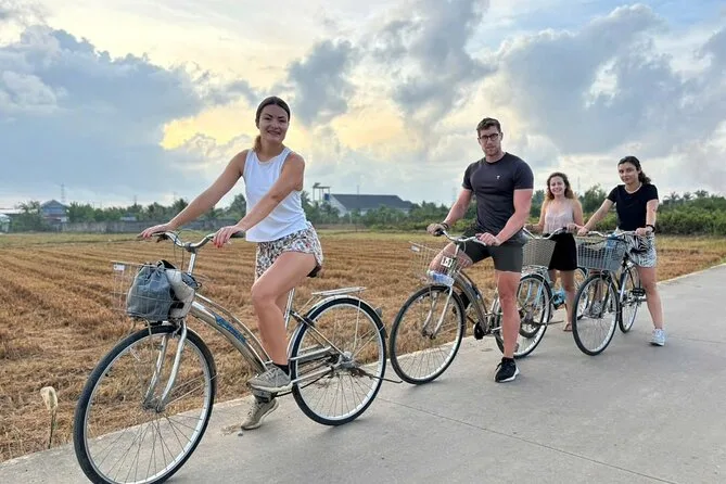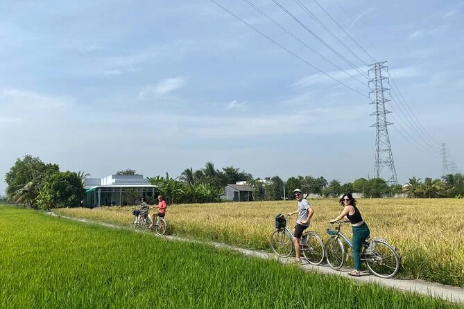 You’ll pedal quiet village roads in the Mekong Delta, join a hands-on Vietnamese cooking class, cruise peaceful canals by sampan with your local guide, sip honey tea at a bee farm, and visit Vinh Tràng Pagoda—all with pickup included. Expect small moments: laughter over spring rolls, music drifting through palm trees, and time to just watch river life drift by.