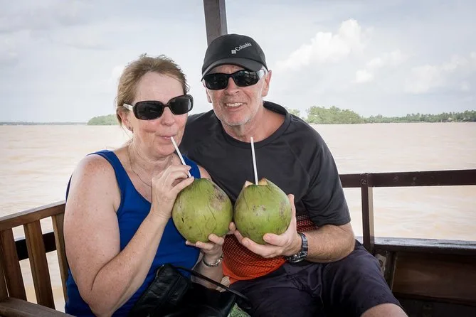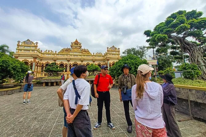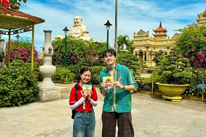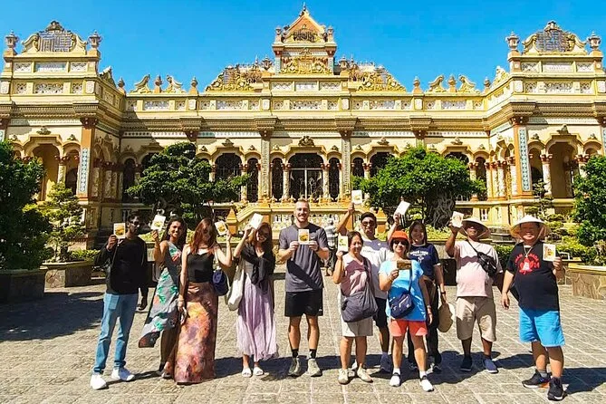 You’ll wander mosaic-tiled pagodas in My Tho, float by palm-lined banks on a classic sampan boat, sip honey tea in a Mekong fruit orchard, and share smiles with locals on winding village paths or from a hammock under swaying trees. This day trip from Ho Chi Minh City lingers long after you return—especially that moment when everything slows down on the river.