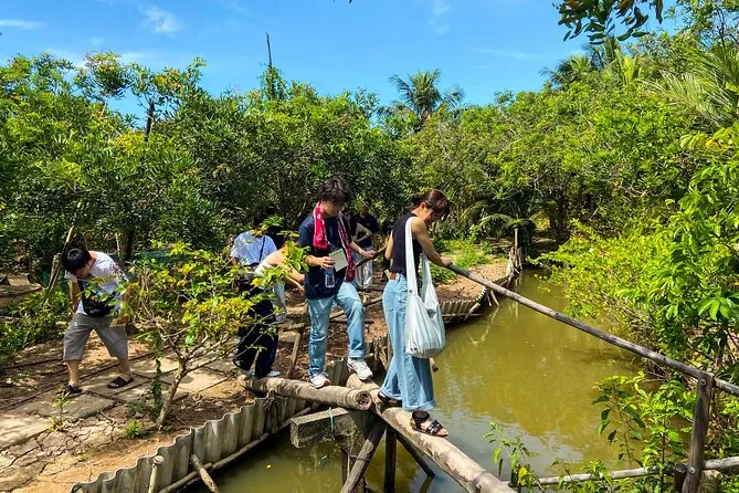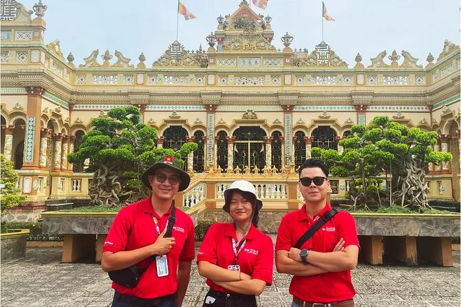 Your day includes hotel pickup and drop-off from central District 1 (with some street exceptions), all entry fees for attractions like Vinh Trang Pagoda, mineral water on board, an English-speaking local guide throughout your journey, boat trips across different parts of the Mekong Delta by sampan and wooden boats, hands-on tastings like honey tea and coconut candy at village stops, plus a traditional Vietnamese lunch served riverside before returning to Ho Chi Minh City in the evening.