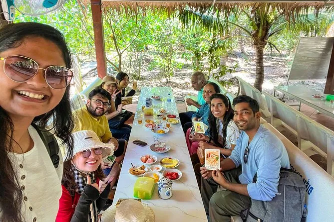 Lunch was riverside — fish so fresh it still tasted of river mud (not in a bad way), plus some kind of crunchy salad I couldn’t name but ate anyway. The breeze picked up while we sat there, which felt good after sweating through my shirt earlier (pro tip: wear something loose). Later we had a choice: pedal through Tan Thach village or just swing in a hammock under the palms. I went for the bike ride and ended up waving at every person we passed — people here wave back with their whole arm, not just their hand. It’s small but it sticks with me.