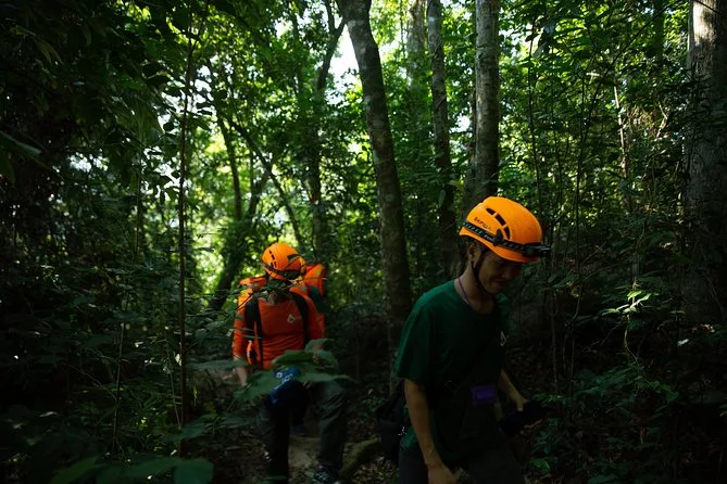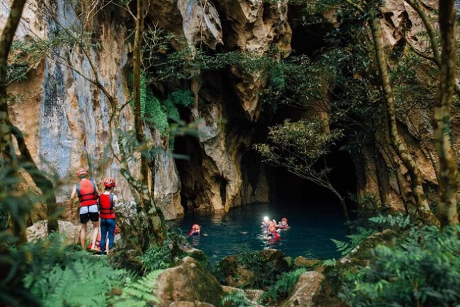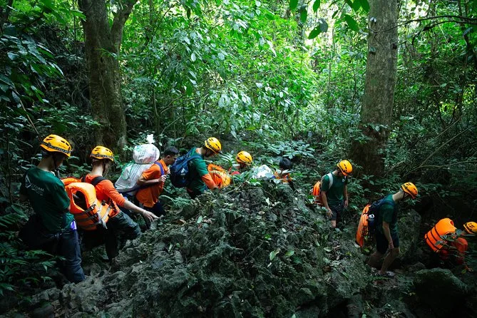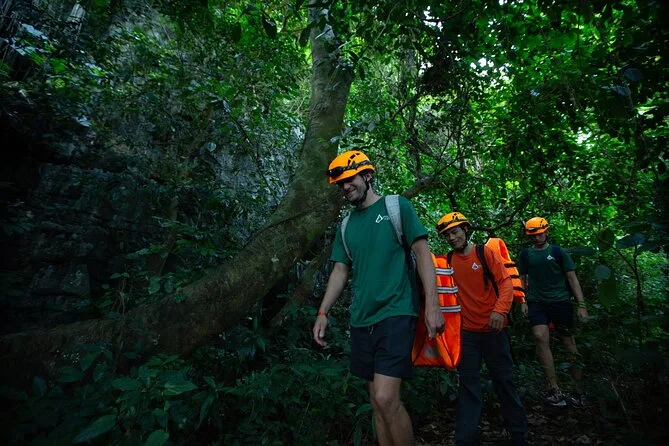 Your day includes hotel pickup from Phong Nha, all forest permits and entry fees, caving safety gear (helmet, headlight, gloves), life jacket for swimming in E Cave’s turquoise water, picnic lunch with snacks and drinks along the way, secure storage for luggage at headquarters if needed, use of trekking boots if you forgot yours (like I did), plus first aid support throughout the adventure.