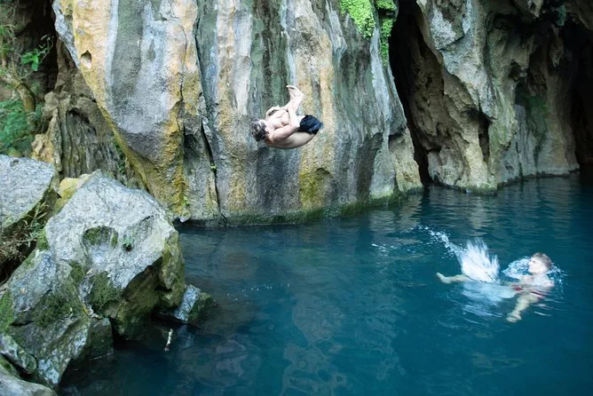 Lunch was simple—boiled eggs, cookies, yogurt—but after scrambling over rocks and ducking into caves it tasted like a feast. Swimming in E Cave…honestly? Colder than I expected but worth every goosebump. The water is this unreal turquoise that looks fake in photos but isn’t. We floated on our backs under the ceiling while someone tried (badly) to sing an echo; it sounded hilarious bouncing off the stone. Didn’t expect to laugh that much underground.