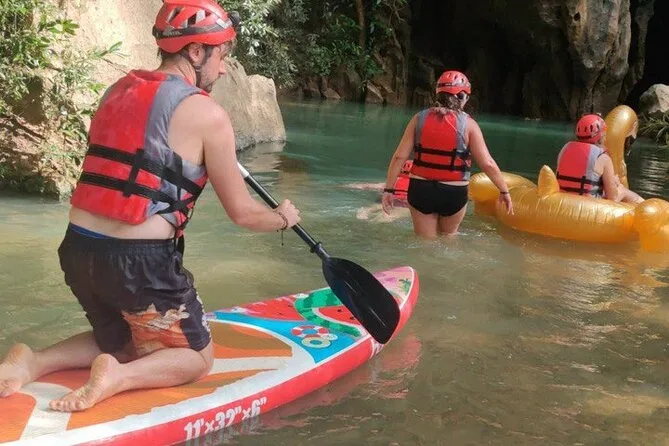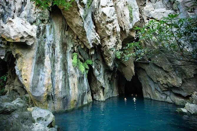 You swim about 200 meters inside E Cave’s turquoise water and can try SUP or snorkeling.