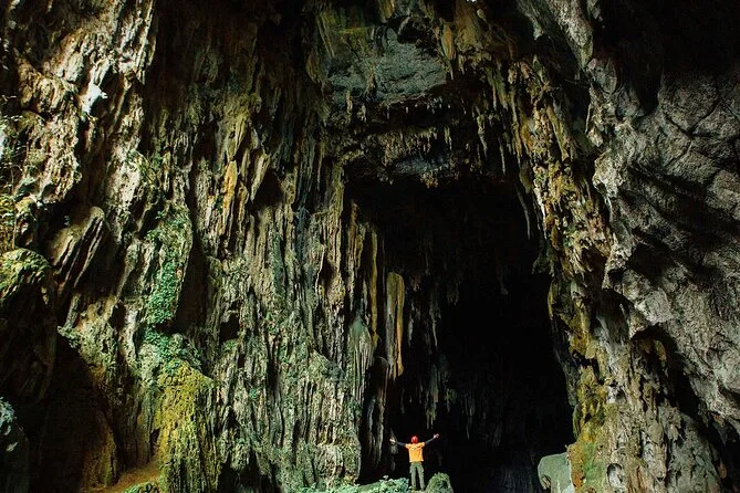 The trek into the Abandoned Valley is rougher than I thought—roots everywhere, rocks underfoot, and this thick green smell that sticks to your skin. Hieu kept stopping to point out tiny orchids or explain how locals used some plant for medicine. My shirt was soaked before we even reached Golden Cave. Inside it’s dark but gold stalactites catch your headlamp just right—like someone dusted everything with cinnamon. Hieu picked up a “galaxy pearl” from the floor and passed it around; it felt weirdly heavy and smooth, like holding a marble from another planet.