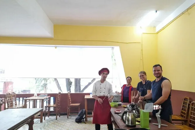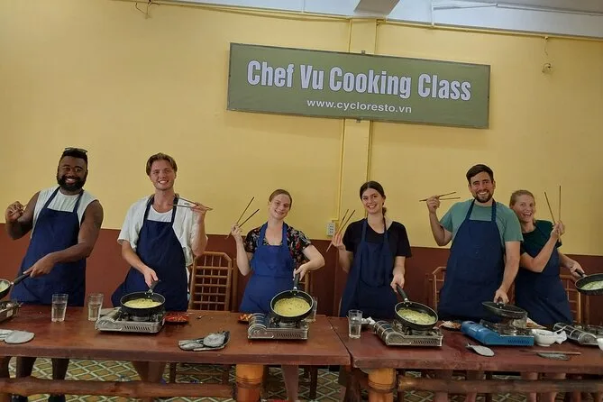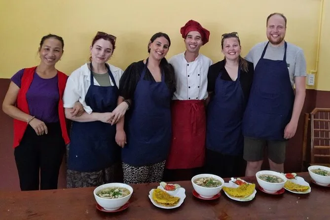 You’ll help choose from options like bánh xèo pancake, fried spring rolls, chicken noodle soup, papaya salad, plus egg coffee for dessert.