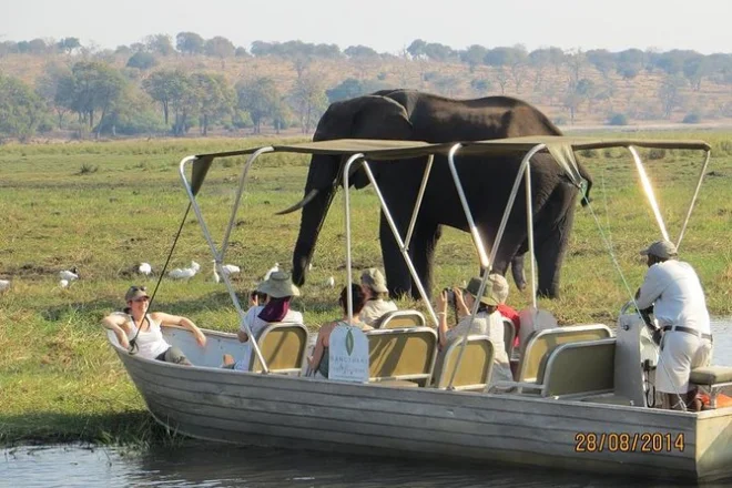 The tour includes a boat cruise on the Chobe River and a guided game drive within Chobe.