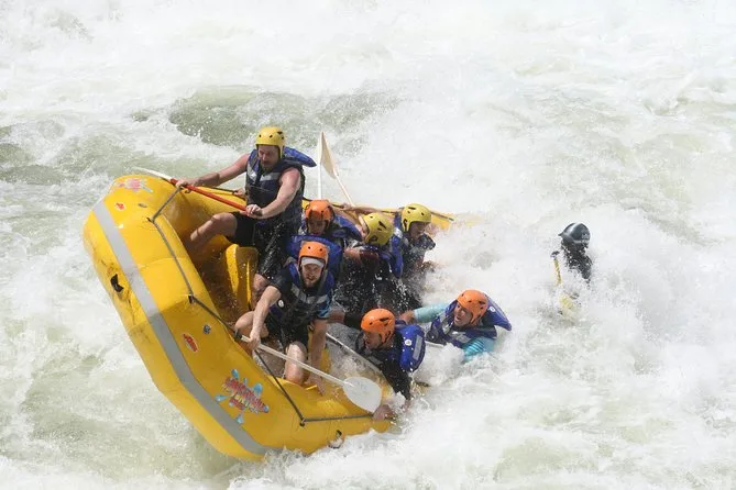Your day includes hotel pickup in Zimbabwe, all safety equipment (life jackets, helmets), guidance from experienced local river guides throughout your Zambezi white water rafting adventure below Victoria Falls, a simple lunch with drinks at the top of Batoka Gorge after climbing out, plus return transport back to your hotel—just bring cash for park fees.